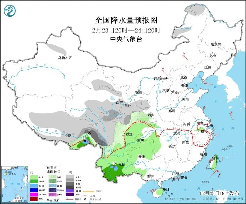 • 23日20时至24日20时,内蒙古东北部、黑龙江西北部、新疆沿天山地区、西藏中东部、川西高原中北部、青海东部和南部、西北地区东部、云南西北部等地部分地区有小到中雪或雨夹雪,其中,西藏东部等地局地有大雪。湖南西部、西南地区大部、海南岛、台湾岛等地部分地区有小到中雨,其中,西藏东南部、云南西南部等地部分地区有大雨。